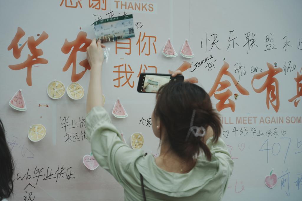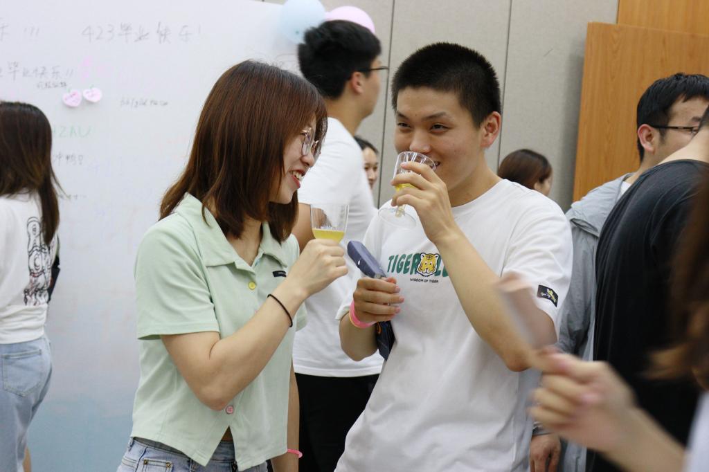 李二虎老师亲手酿制的唯一一批葡萄酒,四年的沉淀与窖藏也象征着22届毕业生一路以来的成长。同学们举杯品茗,回忆着身在华农的点点滴滴,享受晚会的快乐时光。