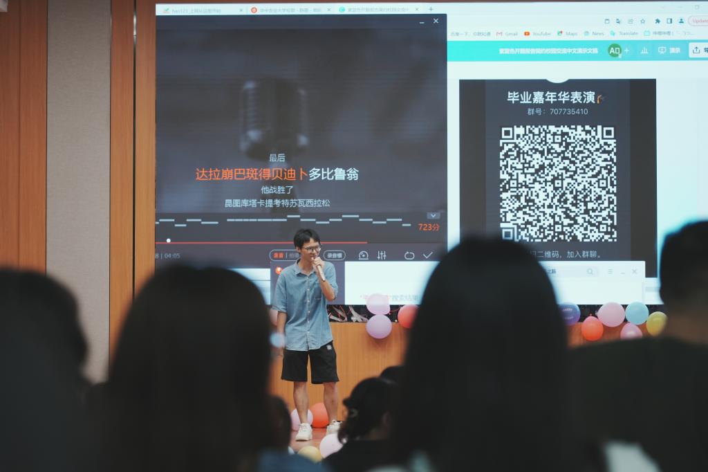 青春歌舞则分为节目表演和现场点歌两部分,非毕业年级的同学为即将毕业的学长学姐表演歌曲和舞蹈,表演结束后同学们自由点歌。现场同学们笑容洋溢,其乐融融,展现出青春的美好。院长徐晓云发言,她希望同学们从此出发,飞向更广阔的天空。李二虎教授则表示,此次提供的葡萄酒酿造时间与毕业生入学同年,葡萄酒经过四年的沉淀,颜色变为靓丽的黑色,带有淡淡的木头香,口感更柔和,就如2020届毕业生经过四年的沉淀,成为更好的自己。点歌环节中,同学们展现自我,以青春歌舞的形式在校园里留下自己的印记,一首《狮山下》带大家回顾了在华农的点点滴滴;全场合唱《华中农业大学校歌》,校训“勤读力耕,立己达人”不断激励着一代代华农学子。
