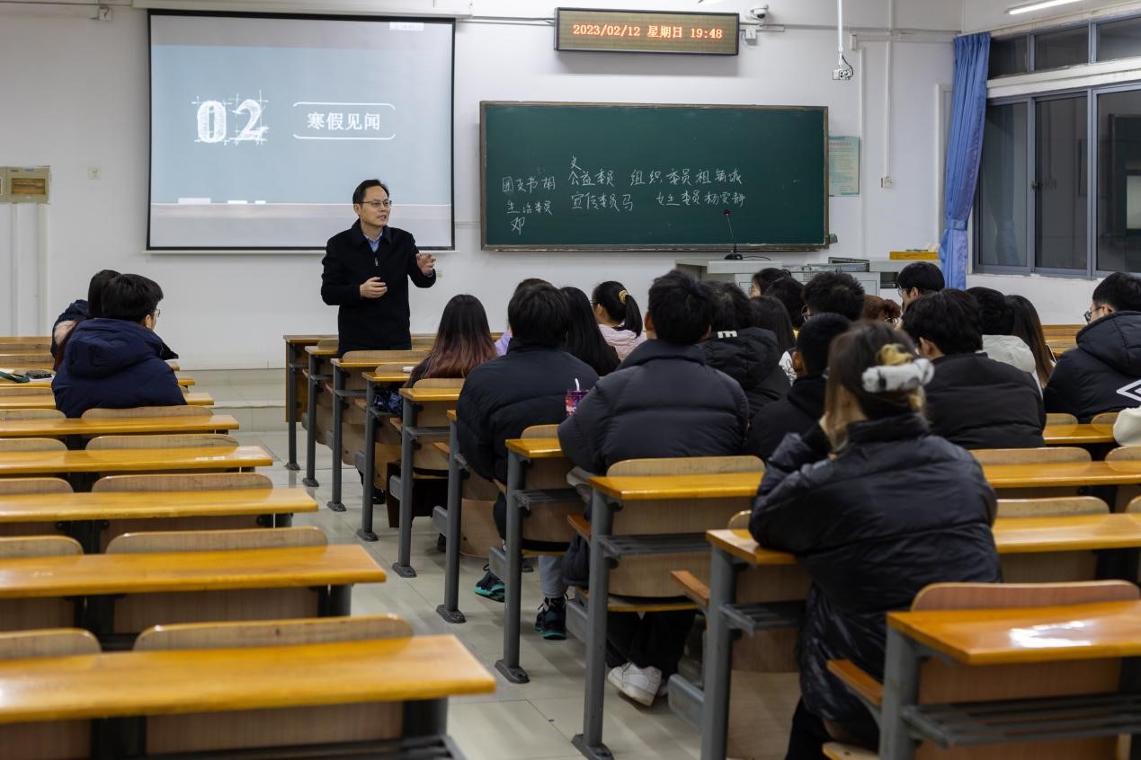 党委书记杨铁贵、副院长陈前江走进各班班会,与学生们交流寒假见闻。