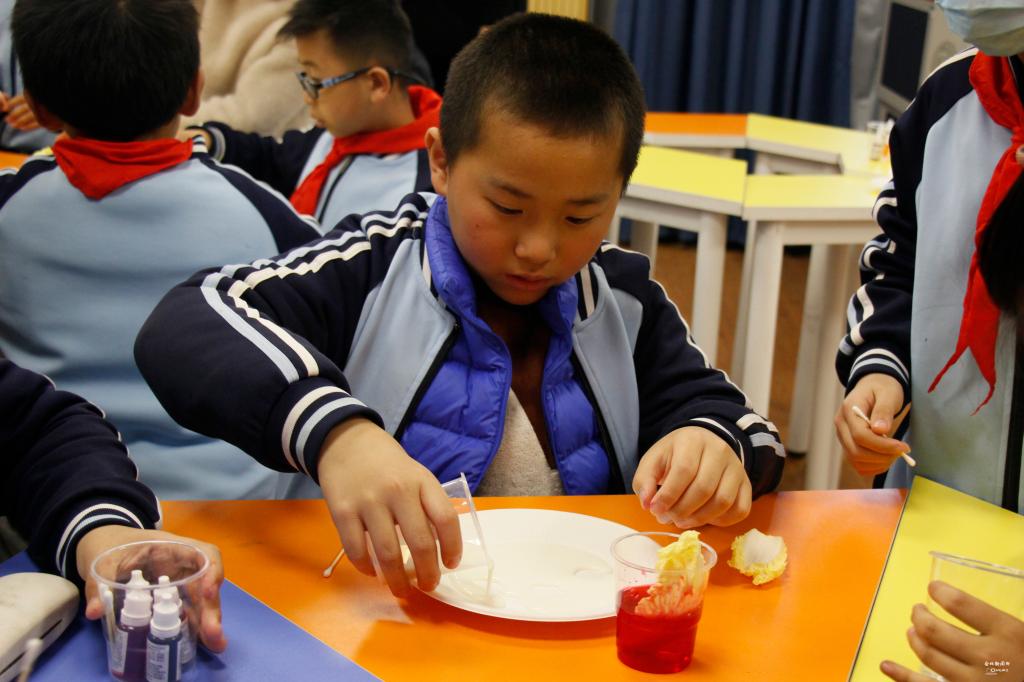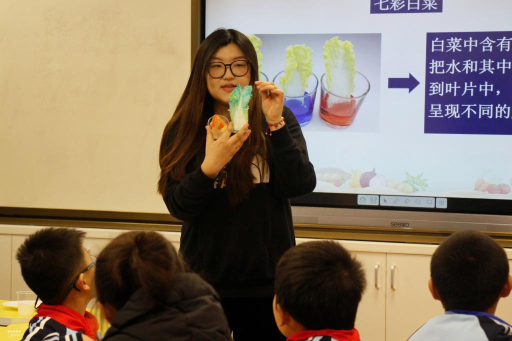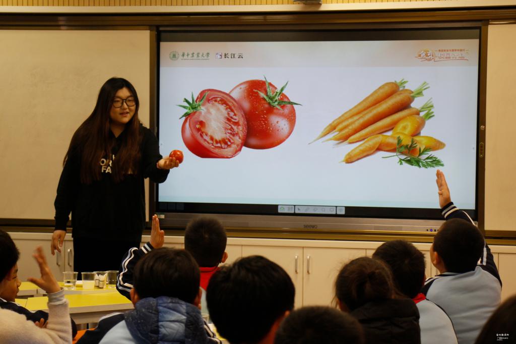 耕读学堂系列活动之一——“食物色素的奥秘”走进华农附小,讲师刘钰洁用生动形象的语言和丰富有趣的实验,给四一班的小朋友们带来了一场别开生面的色素知识科普大课堂。