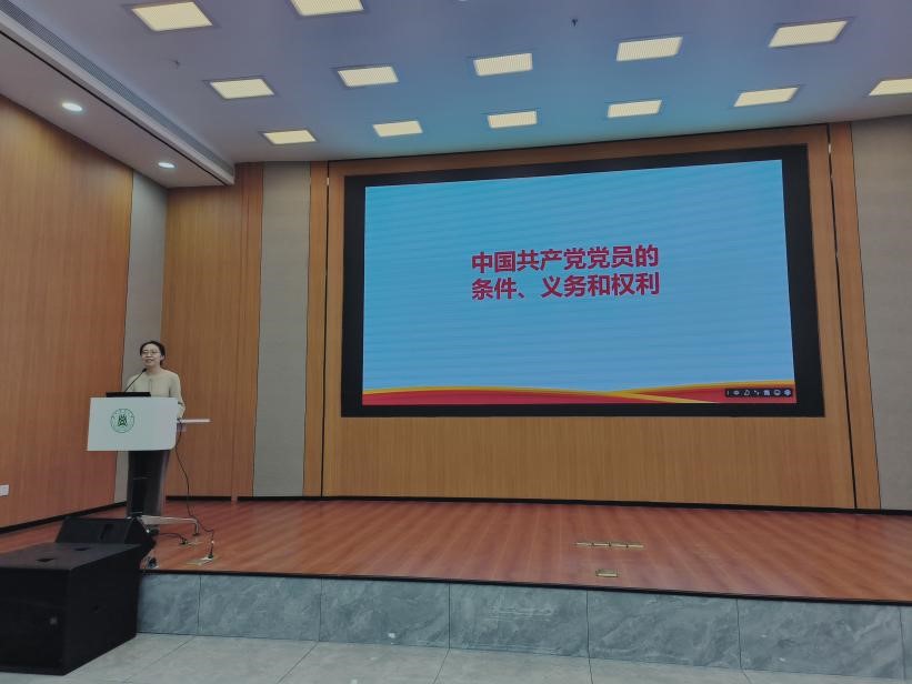 的胡小娱老师授课,主题为《党员的条件、权利和义务》。