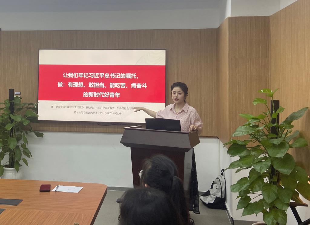 2023届研究生毕业生就业的实际情况进一步强调了科技、教育和产业的辩证统一关系。她提出,高科技人才更应重视科研成果转化成效,同时还应全方位全方面提高自身综合素质水平以获得更好的职业发展,实现个人价值与社会价值的统一。她呼吁各位党员同志在“健康中国”建设中主动作为,在助力乡村振兴中奋发有为,在参与社会治理中担当善为。把论文写在祖国大地上,把汗水留在人民心中。在学习活动最后,青年党员同志们纷纷表示,在未来的工作学习岗位中要进一步发挥党员模范作用,勇担青春使命,不负实现中华民族伟大复兴的责任,做有理想、敢担当、能吃苦、肯奋斗的新时代好青年。