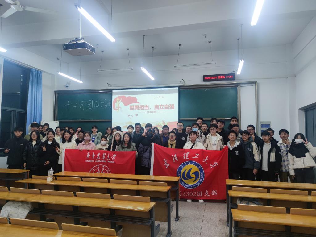 电信类2302团支部,共同举办12月主题团日活动,活动以“挺膺担当,自立自强”为主题,旨在激发团员们的责任担当精神,培养自立自强的品质。活动由食工类2304团支部成员井馨悦主持。