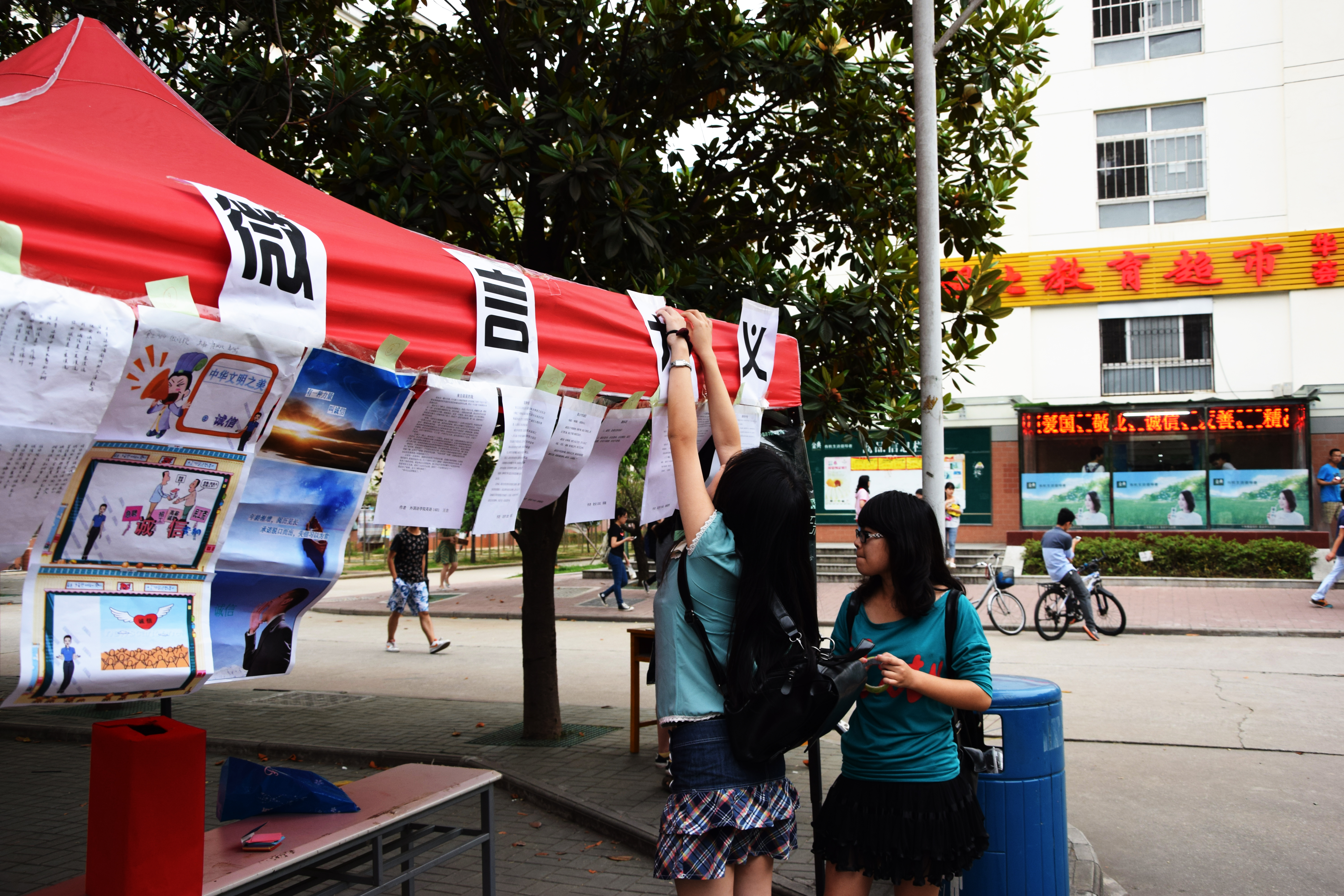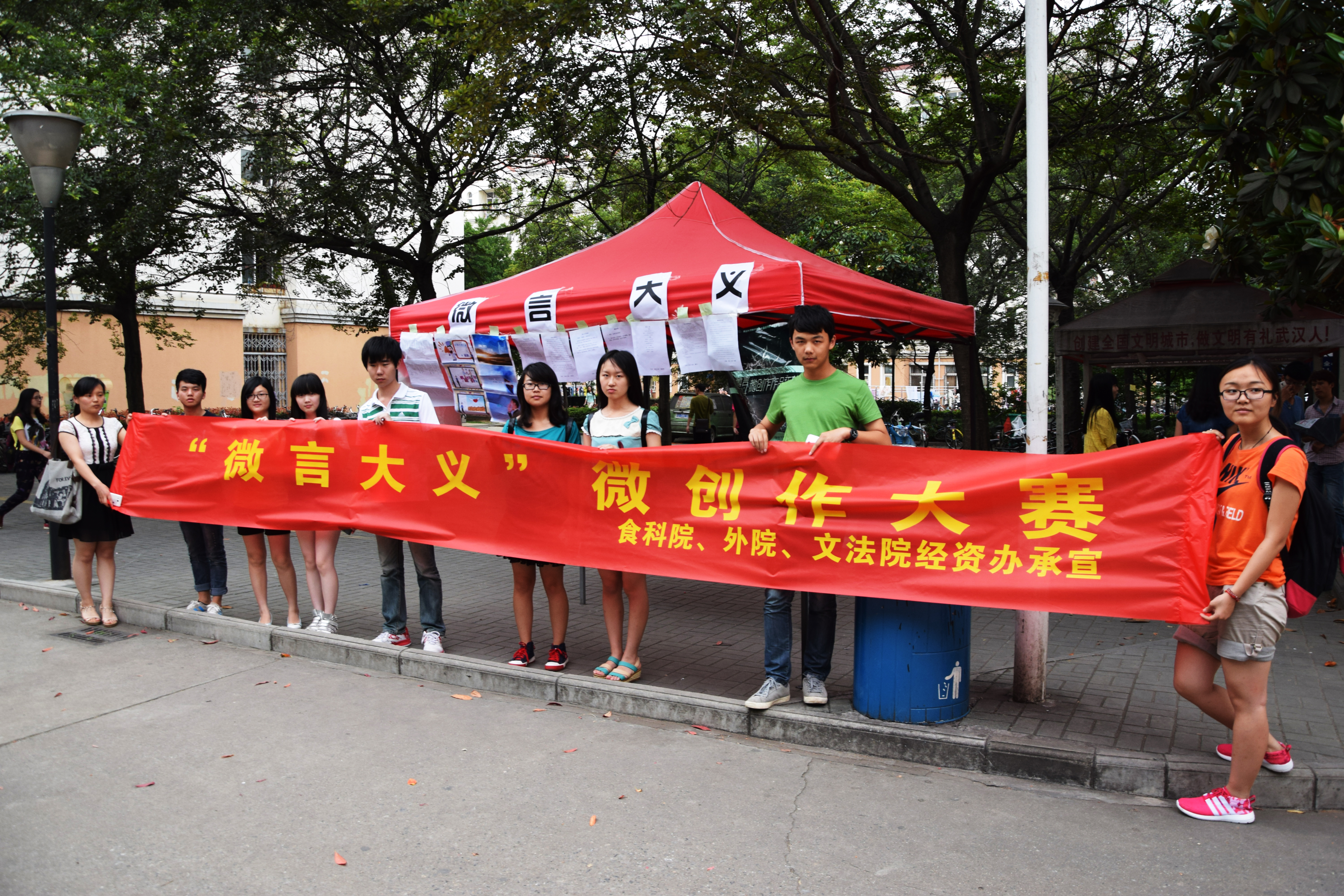 5月22日,由雷速篮球 与外语雷速篮球 、文法雷速篮球 联合承办的华中农业大学第三届诚信教育活动月之“微言大义”微作品征集大赛的现场投票环节在荟园主干道火热进行,通过网络投票选出的10个作品进入了本轮的现场投票环节。路过的同学们纷纷停下脚步,为喜爱的作品投下了自己宝贵的一票,入围作品的创作者也积极组织亲友团参与现场投票。