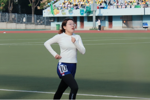 今年是卢晓阁老师成为辅导员的第四年,也是她第三次踏上运动会的赛场。“其实我并不是很擅长运动,但是我想挑战自我、突破自我,更深切地感受‘无体育不青春’的蓬勃力量”,卢晓阁老师笑着说。对于她而言,800米田径项目是一场“爆发力”和“信念”双重考验,是一项综合体育素质的挑战。“不积硅步,无以至千里”,深呼吸、起跑、摆臂加速、冲刺,每次训练她都将动作要领和技巧铭记于心,终如一地严格要求自己,希望不断突破自己。