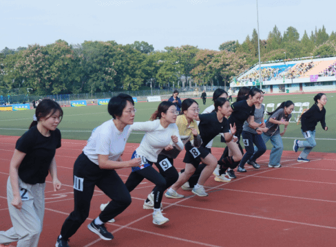 2022级辅导员卢晓阁,她额前的碎发被汗水浸湿贴在皮肤上,却始终盯着终点线,在全场的欢呼声中冲过了那道白色标线。最终,卢晓阁老师以3分34秒的成绩获得了教工组女子800米项目第五名。