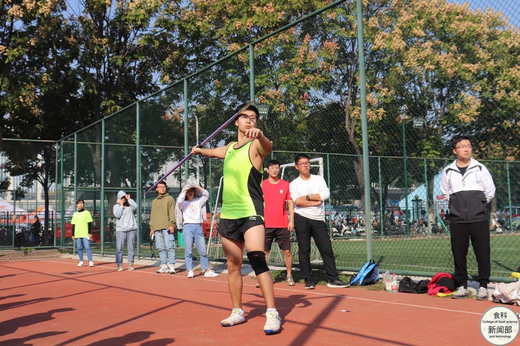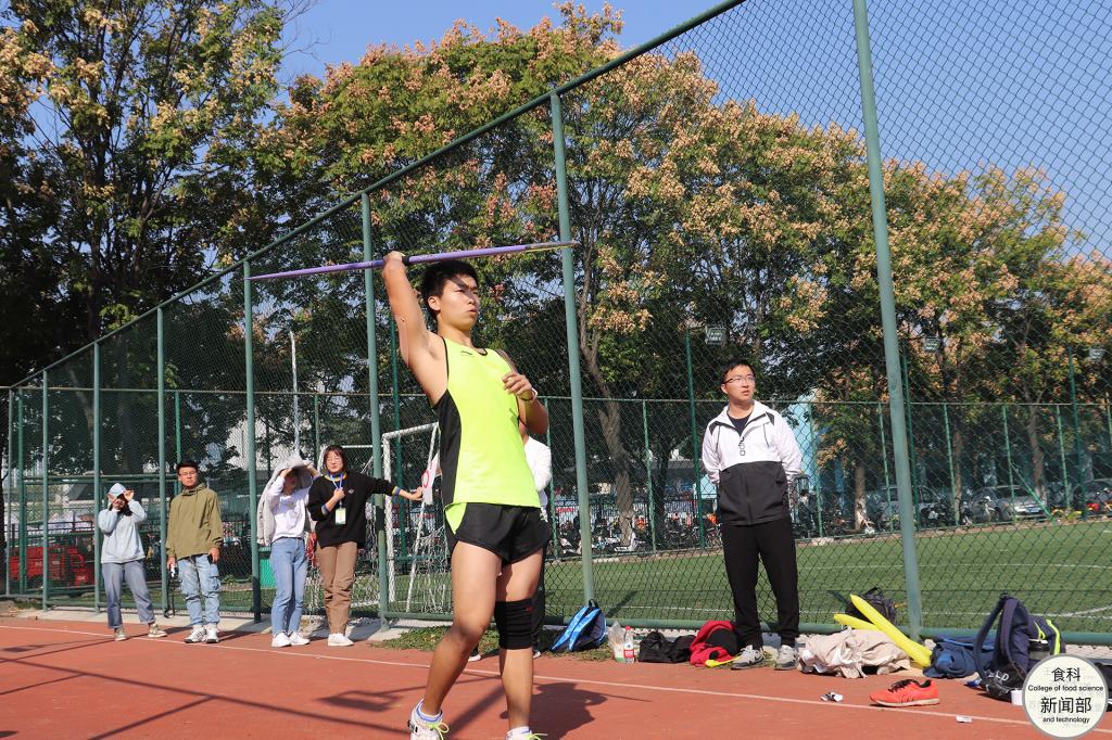 食工类1803班的李梓豪同学以55.72米的优异成绩一举夺魁。