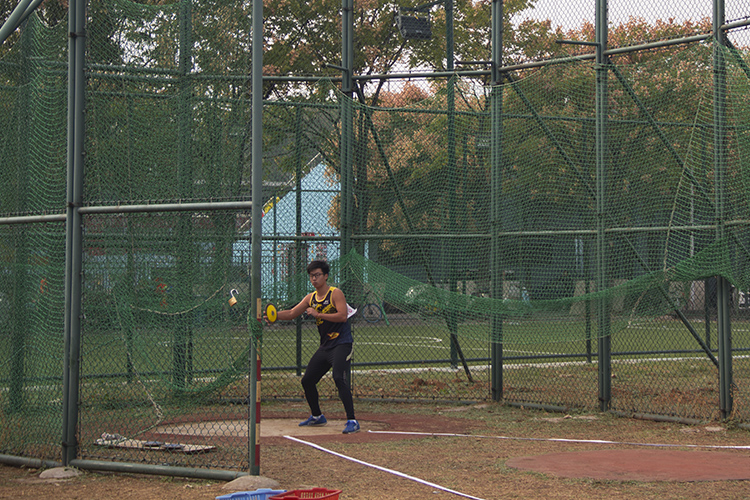1803班的李梓豪获得男子铁饼比赛第四名的好成绩。