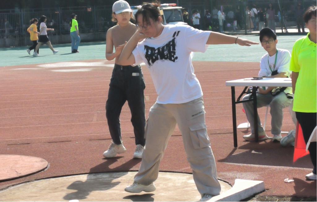 “作为大一新生参加的时候, 第一次站到校级比赛的场上, 很紧张, 也放不开手脚; 加上有三年多没训练甚至没碰过铅球了, 不知道自己的实力退了多少, 很没底气,而且去年赛前因为期中考试将近几乎没参加训练,不管是体能还是技巧都有很明显的缺陷。”杨雯静略有惋惜的说道,“但是现在没有给自己定很具体的目标, 想着尽力而为就好, 能感觉到自己在整个过程中都放松很多。” 从紧张、没底到平静、自如,杨雯静在自己的拼搏之路上不断奔跑、成长。