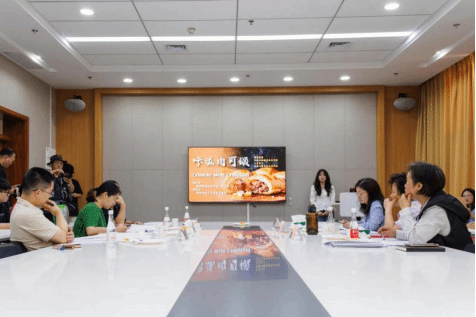 与此同时,“扬翔杯”第十二届肉制品加工创意大赛决赛在新工科楼122会议室举行。大赛以“安全、健康、美味、便利”为主题,13支团队同台竞技、创意迸发。答辩现场,参赛团队围绕产品灵感、工艺及市场定位进行答辩,评委们从创新性、营养配比等维度打分。