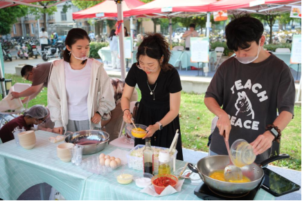 应用化学2202班的毛欢品尝后感叹:“美食真无国界!他们的热情自信深深感染了我,在这里我体会到了食物传递着文化和友谊。”从埃及到巴基斯坦再到贵州,从油炸面点到夏日饮品再到低GI膳食,食材配比、营养热量公开透明,各团队将传统饮食智慧与当代健康理念融合,制作三减、低脂、高蛋白的健康菜品,带来独特的美食体验。