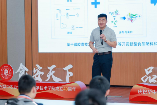 副教授李凯凯主讲。他从国家政策切入,解读多部门联合发布的体重管理指导原则,强调全民科学控重对降低慢性病风险的意义。他通过“面条与米饭的小鼠实验”揭示了不同饮食习惯带来的差异,并倡导饮食结构优化。针对高中生,他提出了“多样、均衡、适宜、卫生”的策略:保证主食供应葡萄糖,保证蛋白质摄入量充足,适当多吃新鲜的水果蔬菜和瓜子仁、花生米等不含不饱和脂肪酸的食物。从政策导向,到科学理论再到日常生活,他向同学们传授了如何在现代社会中通过合理的饮食结构和科学的减脂方法提升身体健康,提高生活质量,养成终身受益的良好饮食习惯。