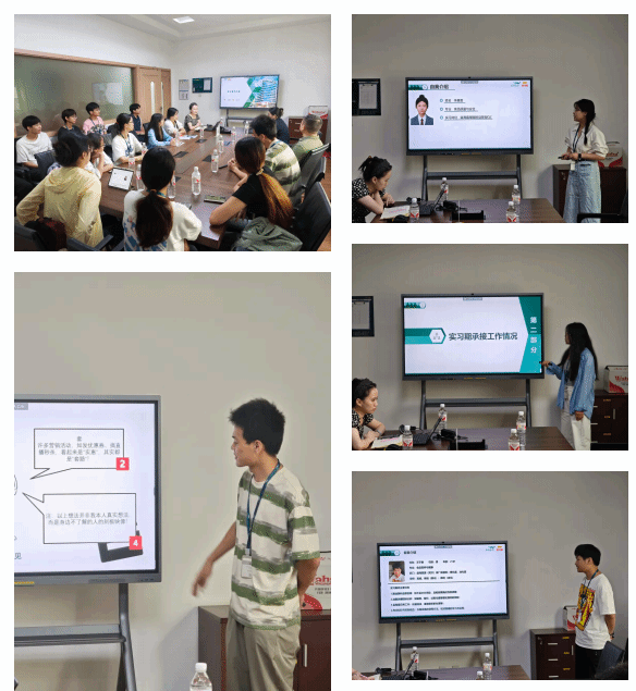 分享环节中,12名实习生依次登台,围绕三大维度展开深度总结。在岗位实践方面,同学们结合具体案例详述岗位职责、核心工作内容及任务完成成效,展现出扎实的执行能力;谈及成长收获,大家既梳理了专业技能的精进突破,如品管岗位的检测技术提升、营销岗位的客户沟通技巧优化等,也分享了从校园到职场的心态蜕变;对于自我提升,同学们客观剖析不足,明确改进方向,并结合实习经历畅谈职业规划——或聚焦精深加工技术深耕学术,或立志投身专业相关工作岗位,同时还为公司流程优化等提出建设性建议。