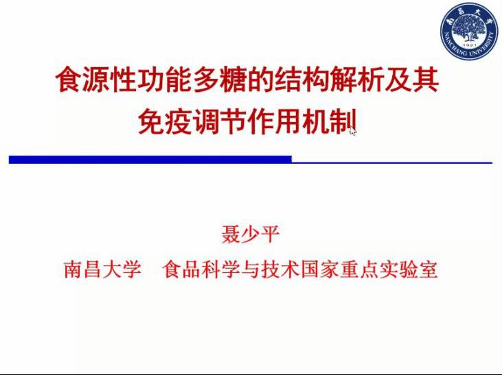 聂少平教授通过食源性多糖的概念入手,介绍了食源性多糖具有参与免疫调节、抗肿瘤、延缓衰老和保肝护肝等多种生理功能,强调了食源性多糖对生命活动的重要性,同时讲诉了自身在解决食源性多糖研究中多糖结构不清楚的问题做的工作及成果。