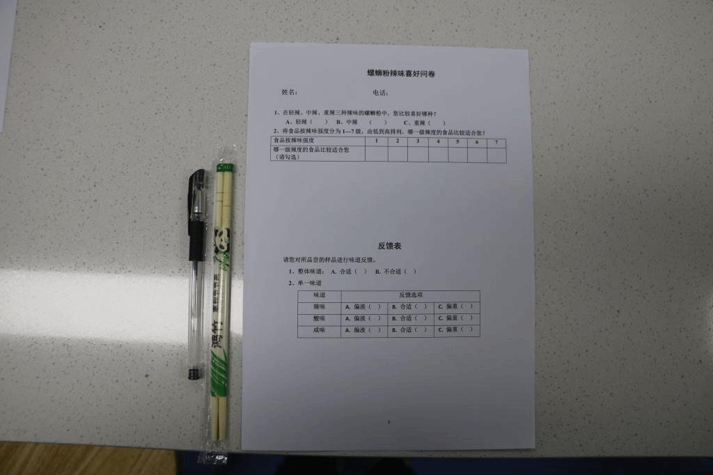“在寒冷的冬天,嗦一碗热气腾腾的粉是再惬意不过的事情了。”本次活动提供了三种辣度的螺蛳粉,老师们可以根据自身口味选择合适辣度的螺蛳粉,在品尝完毕后,填写《螺蛳粉辣度喜好问卷》,并可以根据自己品尝情况提供配方改进建议。