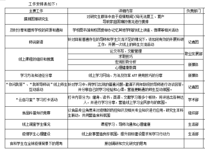 2019年学术年会、科学道德与学术规范知识竞答比赛、“交流共享,协同创新”全国青年食品科学学术论坛、疫情期间“云自习室”学习打卡活动、学生心理建设云端活动、寒假留校温暖人心活动等。从生疏到熟练的蜕变,这一次次的活动中,汪诗琪经受住了困难的考验,刷新了对自己能力的认识,这些学生工作经历让她受益匪浅,正如她所说:“那些打不倒我的,终会让我成长,学生工作中得到的锻炼,都是我未来最珍贵的财富。”