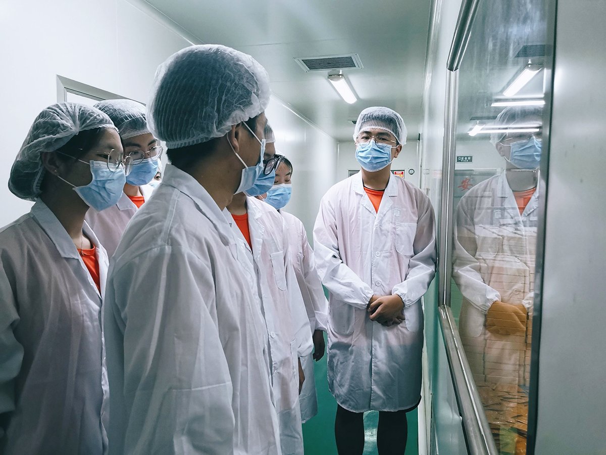 通过参观两家企业,同学们参观了蘑菇和固体饮料等的生产流程,扎实了专业知识。万松堂大健康医药集团负责人郭建军结合销售渠道和产品发展建议道:“产品存在生存期较短问题,需要不断进行创新、与时俱进,淘汰不需要的产品,在互联网大数据中寻求广大消费者需求。”同时,企业生产负责人向同学们介绍了特色产品以及产品包装标准知识,讲解了食品行业法律法规的重要性。