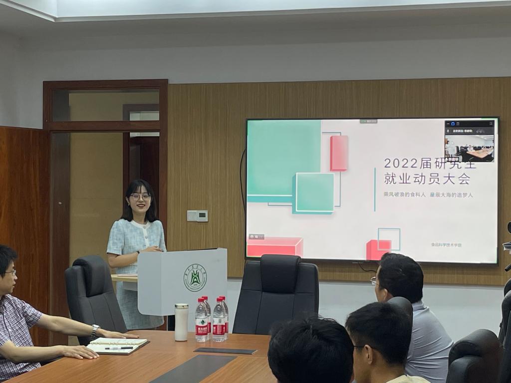 通讯员 张芃芃)2021年9月6日下午,在工科楼225举办了“乘风破浪食科人,星辰大海追梦人”2022届研究生就业动员大会暨培训会。活动邀请了食科院党委副书记向异之、食科院研究生辅导员张静妍、有着丰富招聘指导经验的李建华老师及正大集团人力资源杨玲,食科院研究生就业协调小组和全体毕业生参与了会议。