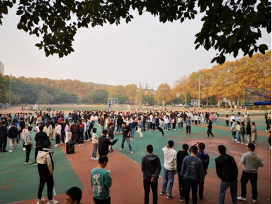 在一运篮球场联合举行“师生融乐”跳绳比赛。两院师生纷纷组队,一起悦动狮山。
