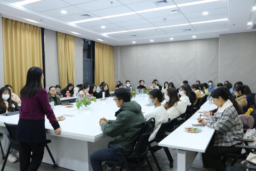 活动后半部分,刘茹老师也从如何阅读文献入手,为大家讲解了研一阶段如何选题的问题。“首先,每一位老师都有自己的研究重点方向,大家选题时可以从老师的方向查找文献资料,逐层递进,从专业书出发,学习基础的专业知识,再到具体方向的文献,最后查阅已经发表的毕业论文与相关报道。拓宽思路,从大方向入手,在看的过程中带着辩证思维去思考总结目前为止的研究的优点及问题。选题时不仅要从理论入手,也要结合市场情况及可行性设计课题。”