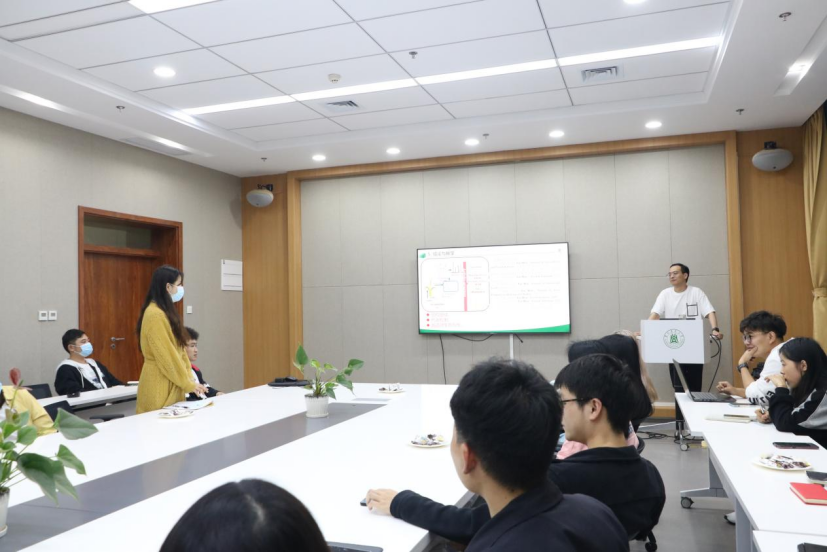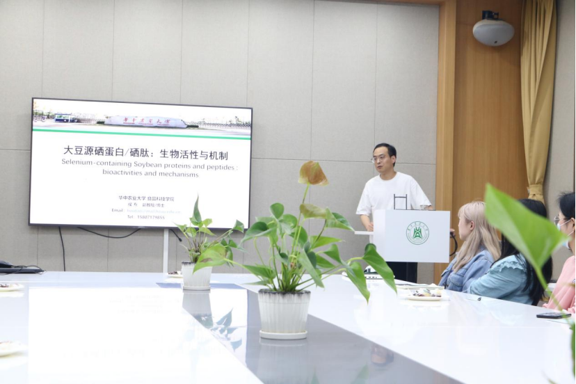活动开始,侯焘老师给同学们分享了最新研究课题“大豆源硒蛋白/硒肽”以及相关成果。首先介绍了硒的吸收利用机制、植物硒蛋白的获得、功能,再到大豆硒蛋白的制备等等,此课题目前已发表6SCI1篇中文文章以及1篇专利。通过该案例,由此引入一个课题的诞生、萌芽、成长以及落地所经历的艰辛,同时,侯焘老师还告诉同学们:“看文献不如看教材,教材是我们知识的起源。科研成果不等人,当一个想法诞生之后,要快速的投入试验,并且作为研究生,我们不能将科研终止于硕士论文,然后将其束之高阁。对于专硕学生,答辩时,最好有自己做出的产品,这才叫真正的完成了硕士期间的任务。”
