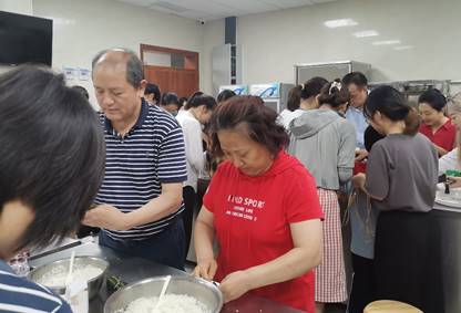 活动伊始,谢定源老师先给到场的师生们上了一堂生动的“端午文化课”,“端午节名字的由来是因为‘端’为‘初’的意思,也就是开端,而‘午’又与‘五’字同音,所以,‘端午’也就是‘初五’的意思”。“端午节时中国重大传统节日,是中华民族优秀传统文化的代表,在20099月,被联合国教科文组织列入世界非物质文化遗产,成为中国首个入选世界非物质文化遗产的节日,并且有很多亚洲国家以及世界各地华人聚居地都有过端午的习俗。”对于近几年在网络上争论不休的粽子口味问题,谢老师向大家科普了粽子的不同种类。“粽子最早起源于春秋时期,到了晋代才被正式定为端午节食品,到了南北朝时期,粽子的品种才逐渐增多,馅料也日渐丰富,现代粽子的品种更为多样化,北方人多以包枣子的甜粽为主流口味,而南方有豆沙、鲜肉、火腿等多种馅料。”