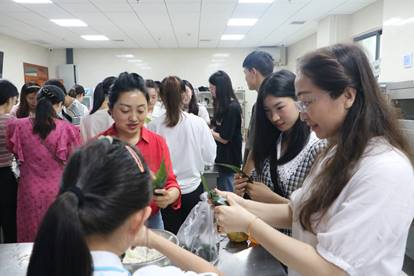 据悉,本次“师生共度、浓情端午”主题活动将师生汇聚一堂,在端午佳节到来之际充分展现出食科院特色,以食品串联起端午记忆。晚茶结束后,同学们纷纷发表了自己的体验感受“即使端午不能回家,但在学校里学会了包粽子,还品尝到了美味的粽子,这样的端午更有意义。”棕香情长意更浓,通过此次活动,不仅拉近了师生之间的距离,还让同学们体验了别样的端午节,了解到了更多中国传统文化。