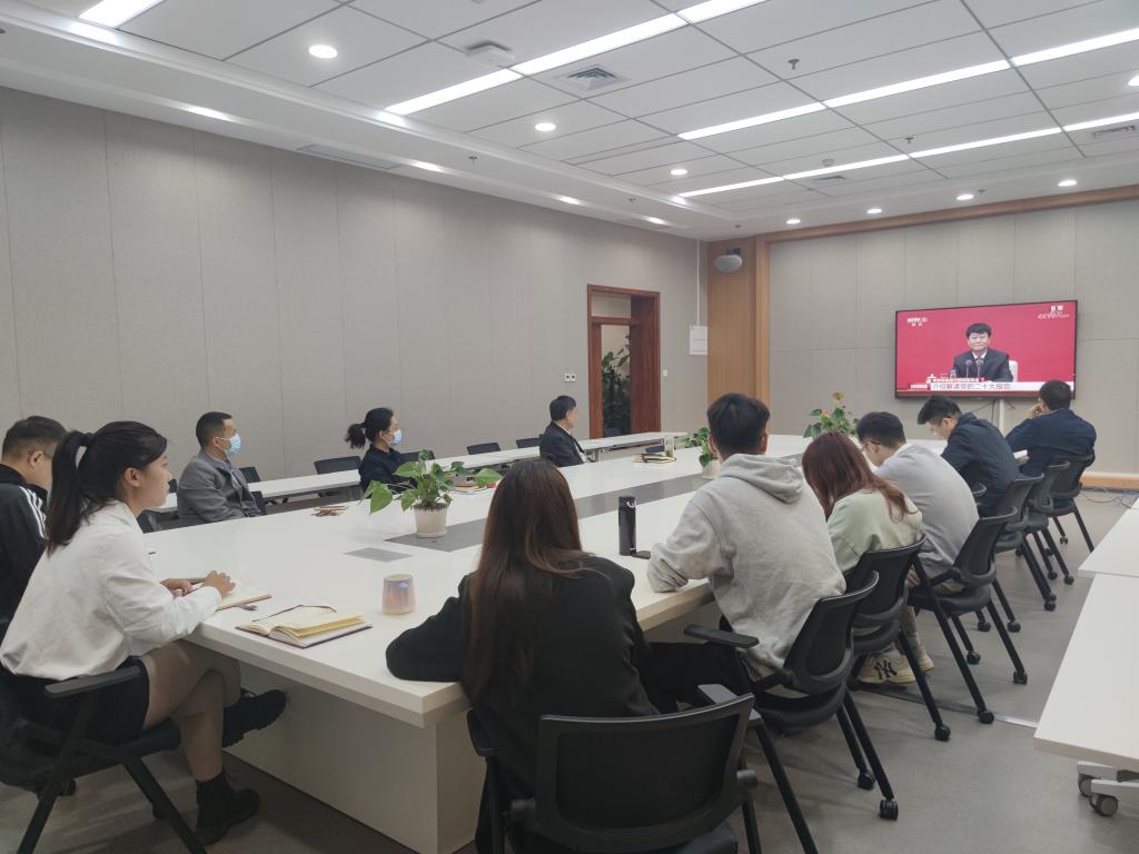 全体领导班子、辅导员、教工党支部书记代表集中收看了发布会现场直播。