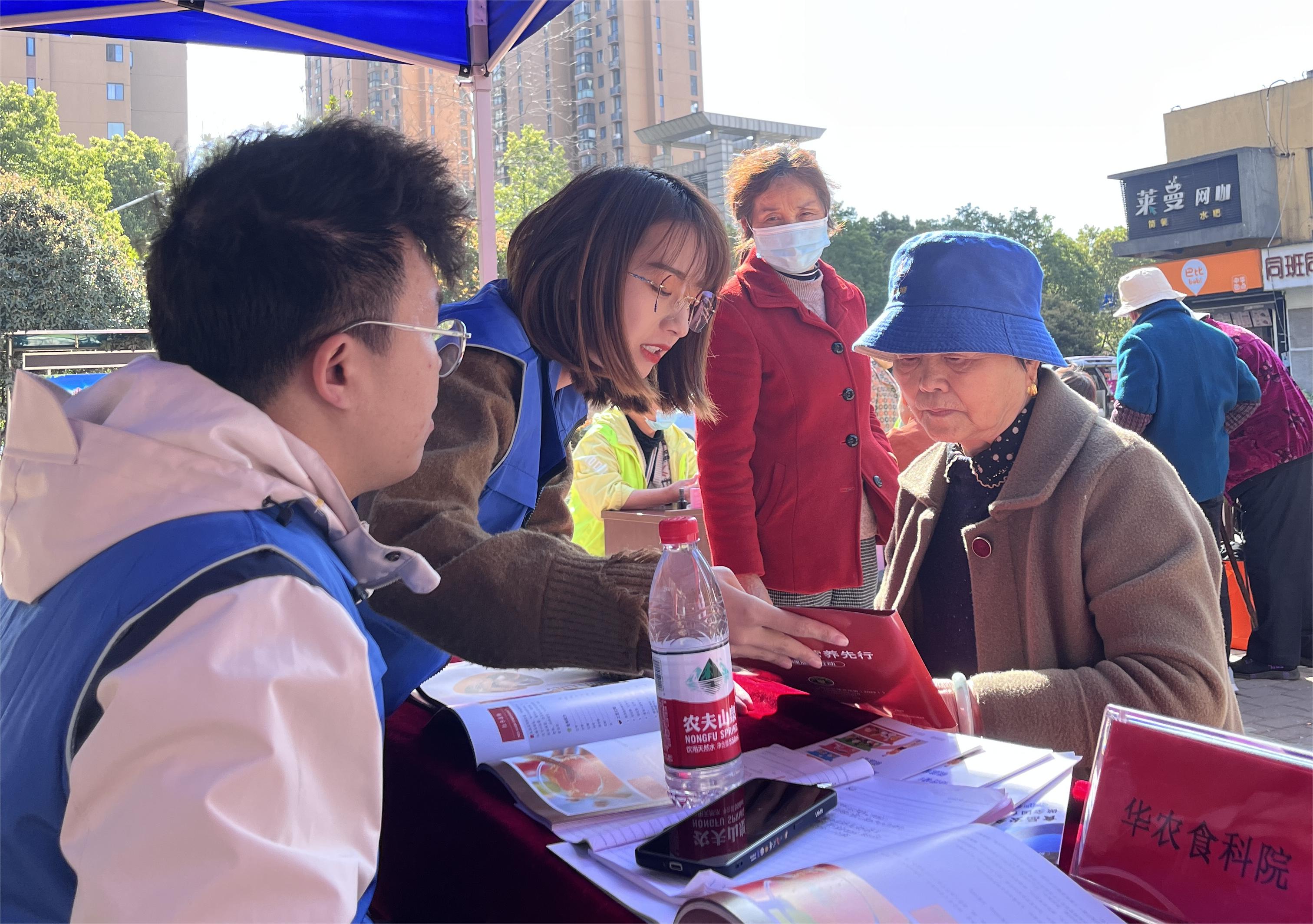 为了更好的维护消费者权益,营造安全、和谐、有序的食品消费环境,华中农业大学“食品安全与营养中国行”博士团走进百姓日常生活和消费场景中,开展了形式多样的食品科普志愿服务活动,引导广大消费者食安全、食营养、食健康,守护好人民群众“舌尖上的安全”。