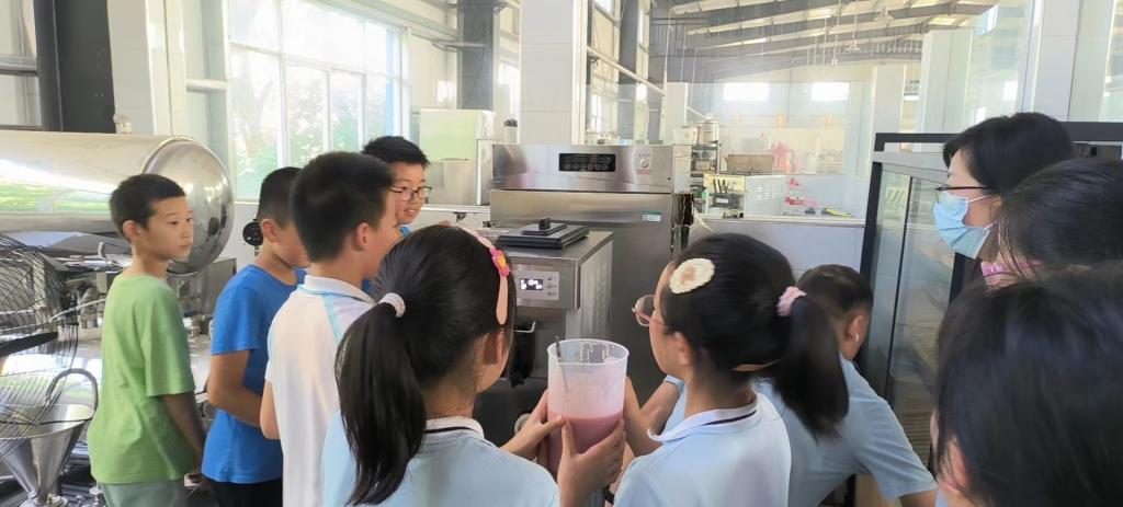 与华中农业大学附属学校联合开展的耕读学堂“‘淇’幻漂流”主题活动在华农附属学校如期开展,五年级(1)班二十多名学生参加了此次活动。活动分为两个部分,同学们先在食品工厂里学习如何制作冰淇淋,然后再亲自动手实践。