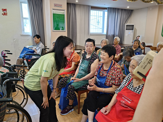志愿服务对员与现场老人交流