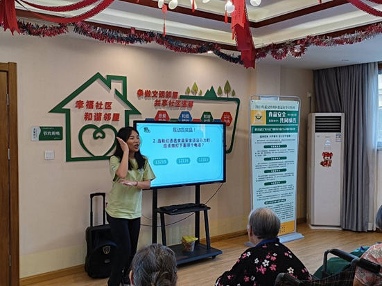 随后,科普团的志愿者围绕宣讲中所提及到的老年人饮食营养与安全相关内容与现场的观众们进行互动。志愿者杨佳提出“老年人应多食用哪类食品?”、适合老年人运动的方式有哪些?”、“遇到食品安全问题如何维权?”等问题,现场观众纷纷举手回答,气氛十分活跃。活动最后,现场老人们纷纷表示,听过这次宣讲后,有很多收获,明白了如何去注重平时的饮食营养与安全。颐德养老院的王奶奶也表示“你们这活动办得好啊!平常我都舍不得丢剩菜剩饭,怪不得肠道消化不好,我以后不吃它们啦!”