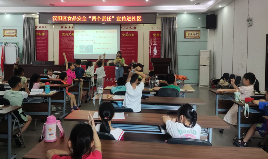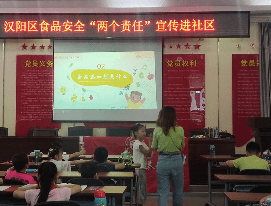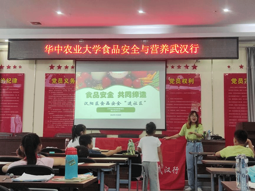 “食品安全与营养”武汉行博士服务团走进武汉市汉阳区澜菲溪岸社区,开展了以“食品中的配料表”为主题的食品安全与营养科普知识讲座,向社区的小朋友揭秘了食品配料表中隐藏的秘密,本次活动由博士团杨慧芳担任主讲人,汉阳区市场监督局、澜菲溪岸社区小朋友以及工作人员等30余人参与此次活动。