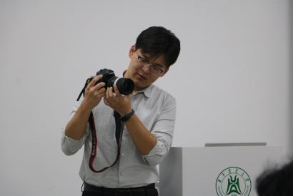 认识自己的搭档。周子恒就相机种类开始了介绍,相机种类主要包括卡片相机、微单相机、单反相机三大类。其中,决定各种相机性能的核心是感光元件画幅的尺寸大小,越大则画质越好,价格也越高。接着对相机部件及模式进行介绍,比如Av表示光圈先决模式,Tv则是快门先决模式,不同模式适用于拍摄不同作品。