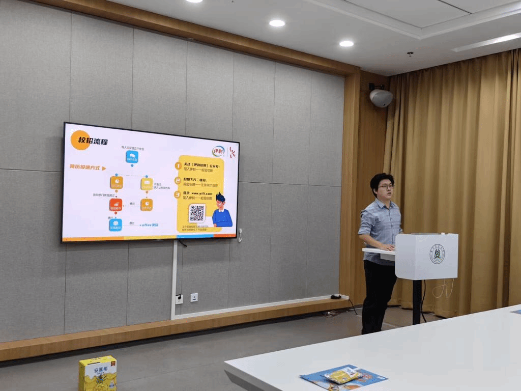 最后,伊利集团销售部经理对招聘岗位信息进行总结,补充了招聘岗位要求,同时,对于同学们关注的薪酬问题、福利问题以及职业生涯等问题作出了回应。