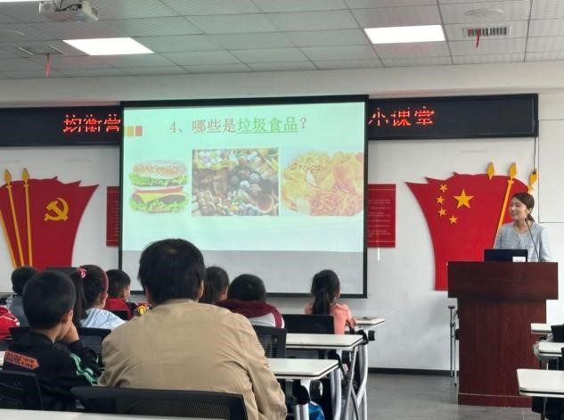 “健康的食物我们已经知道啦,那大家知道哪些是垃圾食品吗?”最后,博士团带领小朋友们了解有关垃圾食品的知识,由于垃圾食品不能满足学龄儿童的成长需求,甚至产生肥胖、青少年糖尿病等健康问题,博士团呼吁小朋友们少吃油炸以及高糖食物等垃圾食品以保证健康成长。