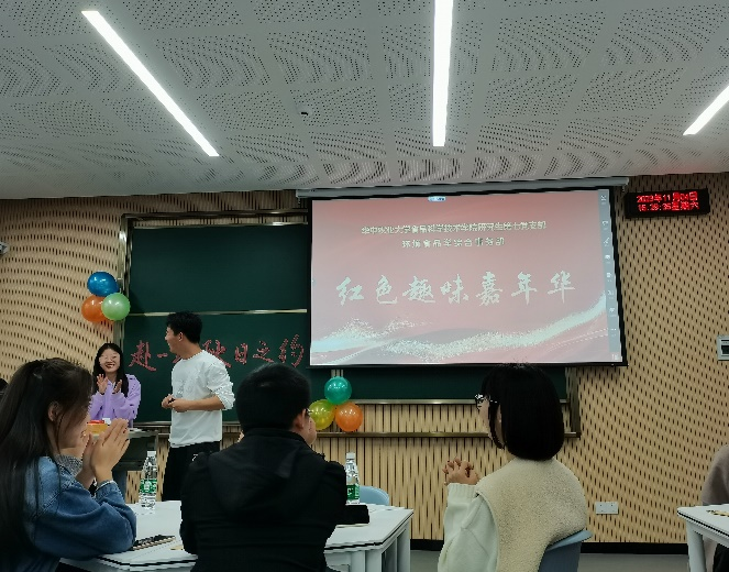 研究生第七党支部于2023年11月4日14时30分在一教503组织开展“党建引领聚合力•快乐运动促和谐”红色趣味校园活动,支部全体成员(含积极分子)及综合事务部全体成员参与其中。