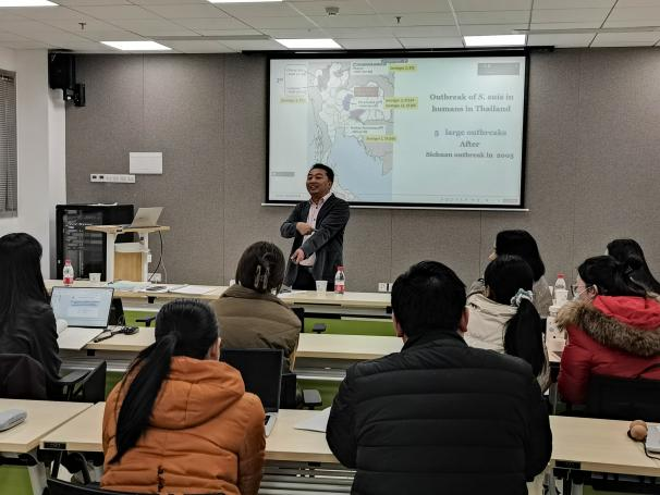 博士)的报告主题是猪链球菌:分子流行病学与社会文化因素。Anusak Kerdsin说:”他在泰国进行了关于猪链球菌感染和人类流行病学的研究超过10年,发表了关于这种病原体的出版物和超过35篇论文。”他的研究分享了引起的人类感染、猪链球菌的检测和分型、流行病学特征和预防控制方面的知识。