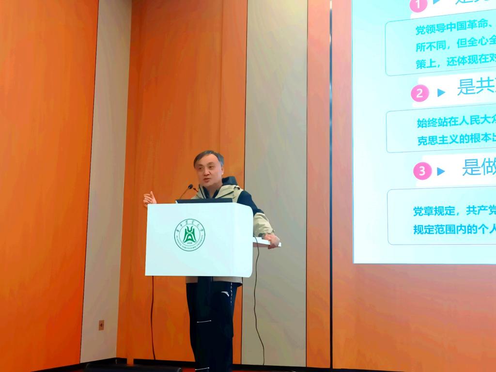 杨铁贵着重介绍了党员的基本条件和党员的八项义务。他指出,要在深入学习党的理论知识中全面履行党员义务,在研究重点难点问题中严格履行党员义务,在深耕本职岗位上自觉履行党员义务。“没有无义务的权利,也没有无权利的义务”。杨铁贵引用马克思的名言向同学们进一步阐释了党员义务和权利的重要内涵,强调了理论学习对于中国共产党的重要性。