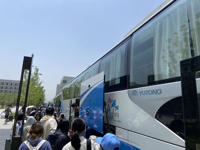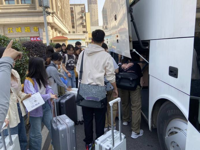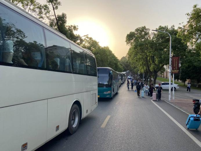 学生乘坐大巴前往高铁站