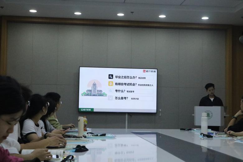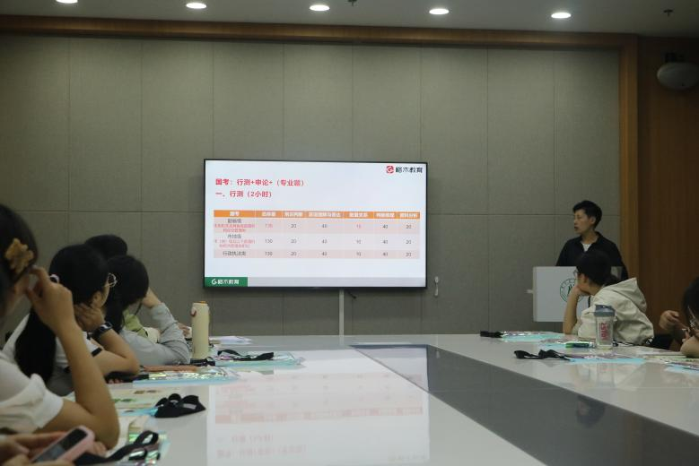 在新工科大楼122会议室举办公职类考试备考指导活动,活动邀请格木教育赵梓燕老师主讲,为即将公考的毕业生们提供详尽的备考规划及指导。