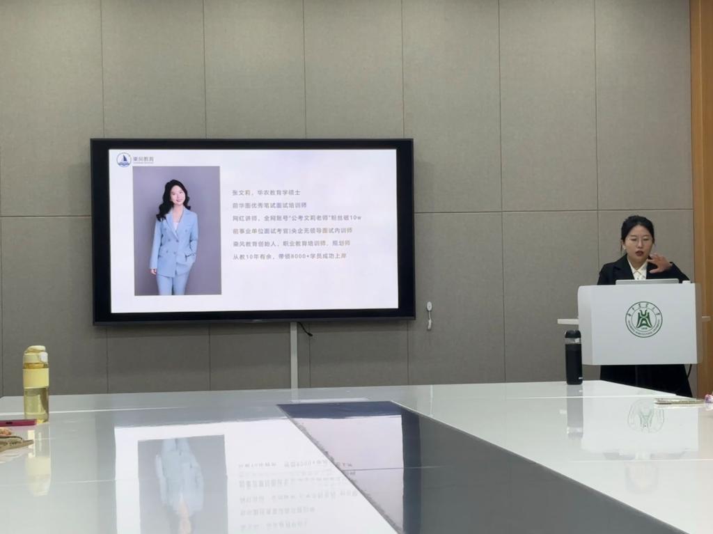 在新工科大楼122会议室成功举办了一场针对武汉市选聘生招考及国考考情的分享会。本次会议特邀乘风教育的公考名师张文莉,为食科院学子深入解析考试内容,提供专业指导。
