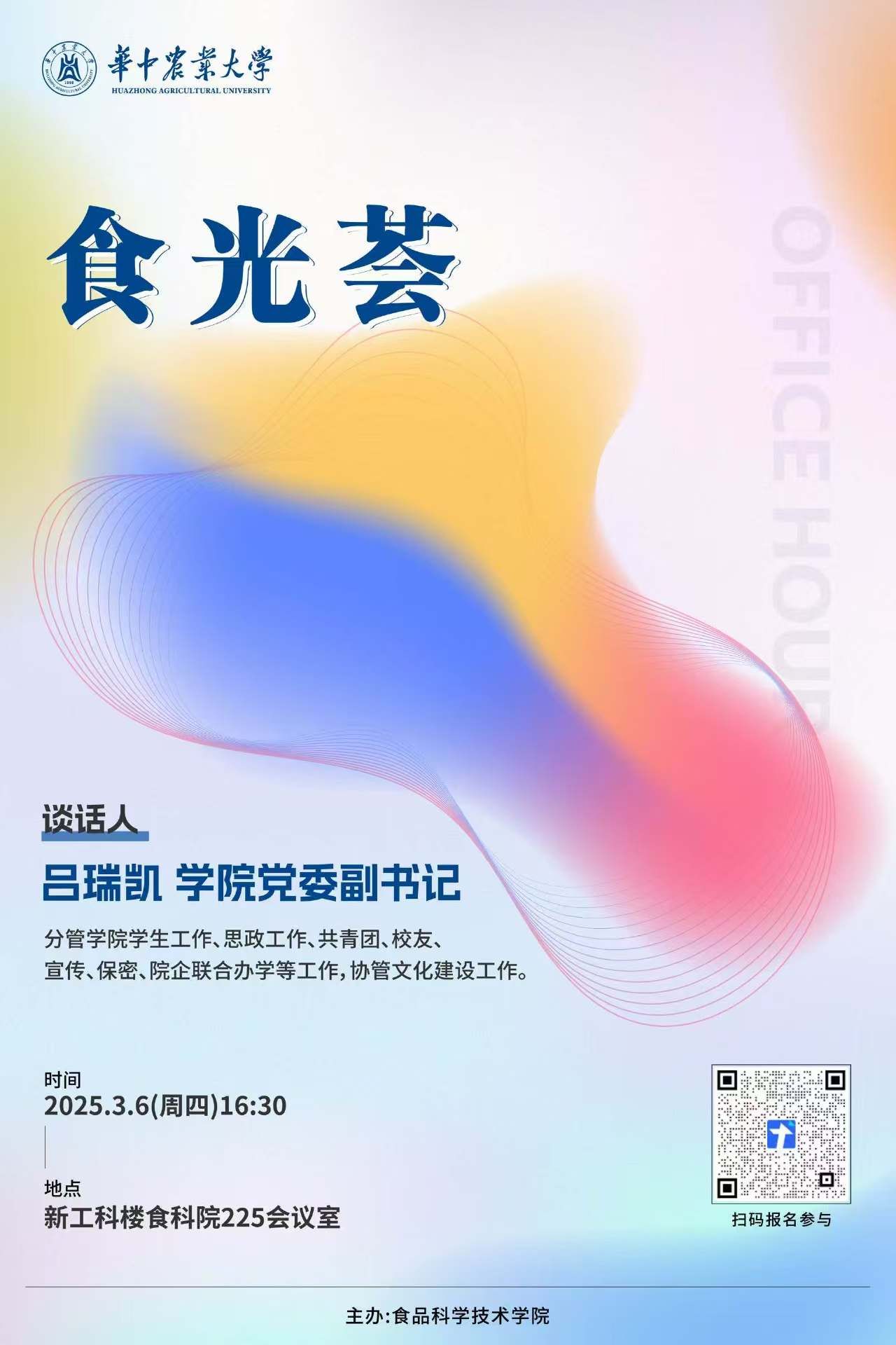 雷速篮球 首期“食光荟-与院领导面对面”交流活动即将举办,本期活动邀请雷速篮球 党委副书记吕瑞凯作为主讲嘉宾出席。“食光荟-与院领导面对面“这一活动旨在搭建雷速篮球 常态化交流平台,后续将定期邀请不同院领导参与交流。