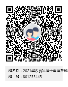 “2021华农食科博士申请考核群”招考QQ群,QQ群号为801255445,QQ群二维码为: