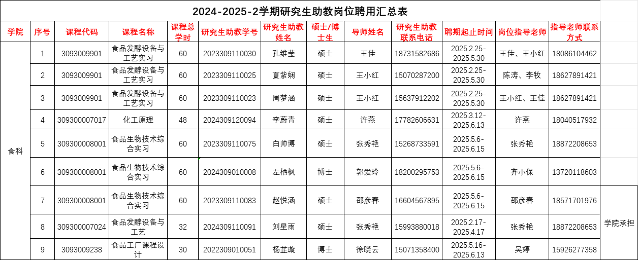 本科课程开设实际需求,先将2024-2025-2学期助教申请条件以及结果予以公示: