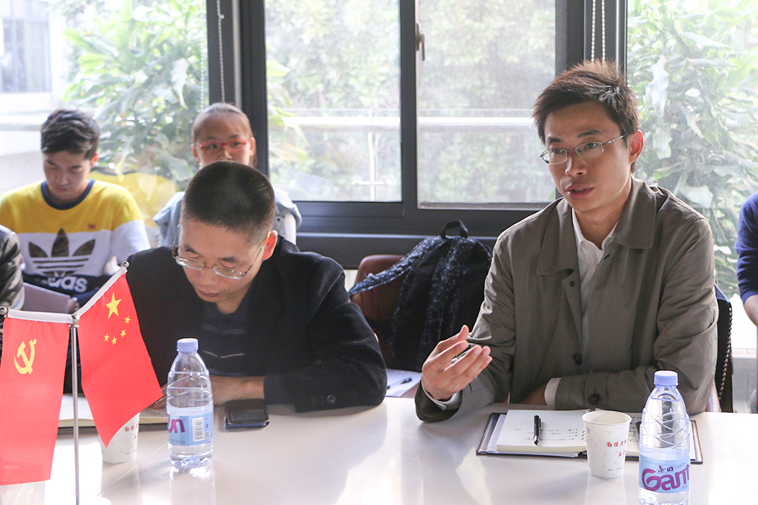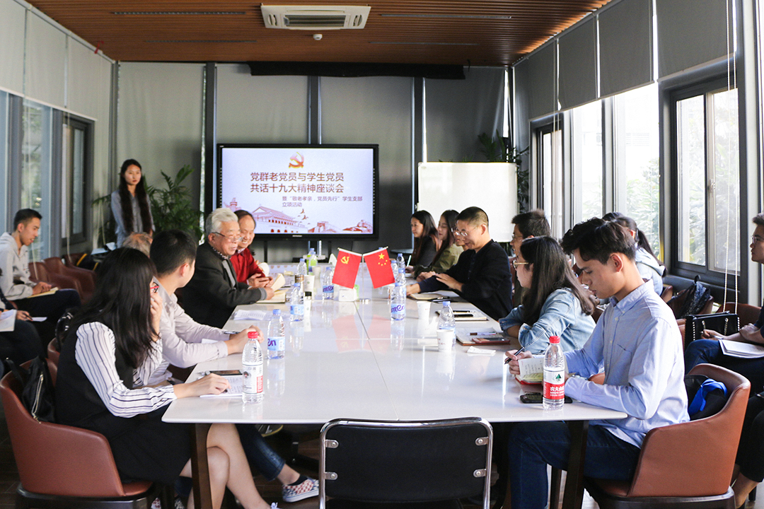 座谈会上,鲁大安和向异之首先分别介绍了双方与会人员。随后,谭祜德作为老党员代表首先发言,分享了他的十九大感悟。他从“新”字切入十九大,回忆了自己年轻时入党的情景,并从新领导班子、新时代、新矛盾以及新的征程四方面全面而深刻地解读了十九大精神。他指出,大学生处在风华正茂的时期,是中国未来发展中坚力量,他向在场学生党员提出“坚定理想信念,勤奋刻苦学习”的殷切期望。